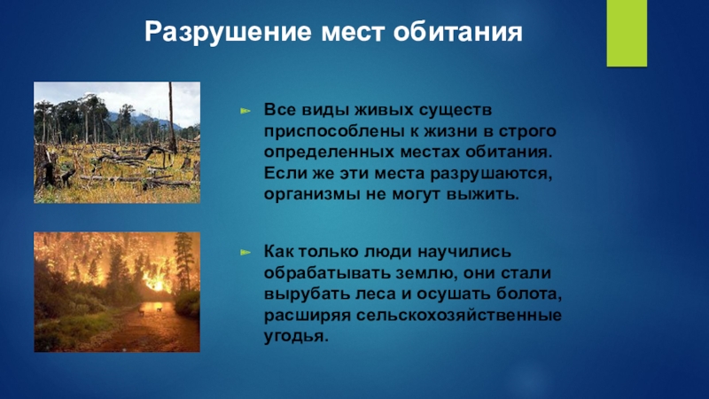 определенных местах обитания. Если же эти места разрушаются, организмы не могут выжить.