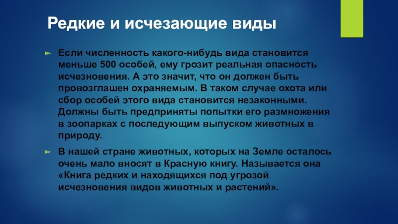 Если численность какого-нибудь вида становится меньше 500 особей,