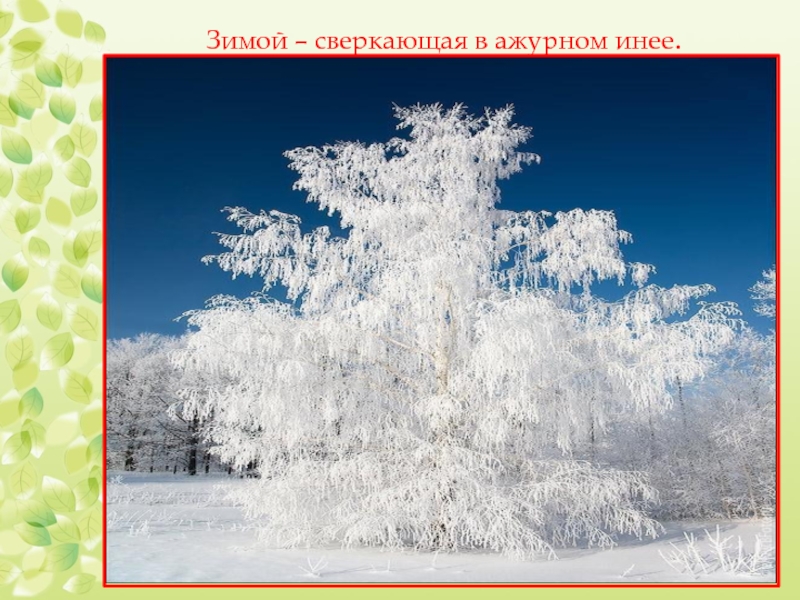Слайд 5Зимой – сверкающая в ажурном инее.