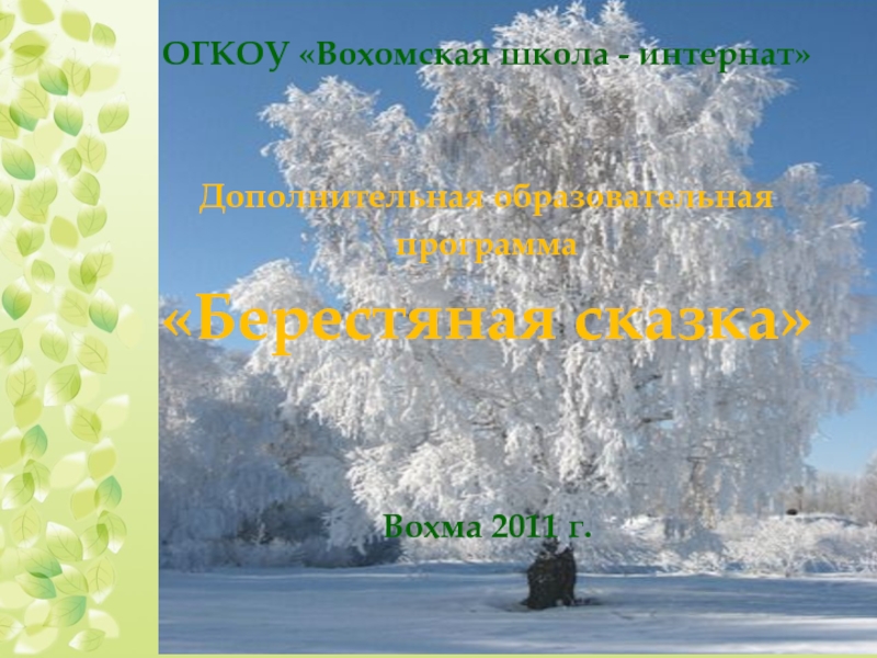 ОГКОУ «Вохомская школа - интернат» Дополнительная образовательная программа «Берестяная сказка» Вохма 2011 г.