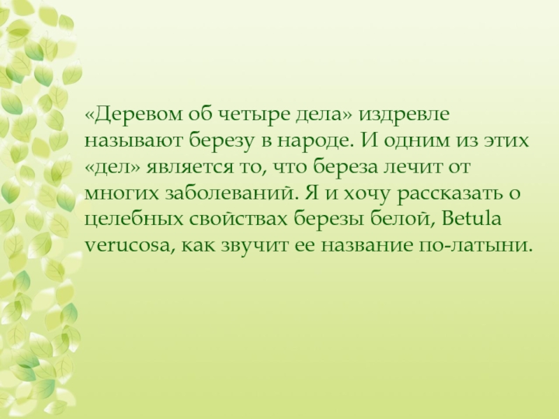 Слайд 25«Деревом об четыре дела» издревле называют березу в народе. И одним