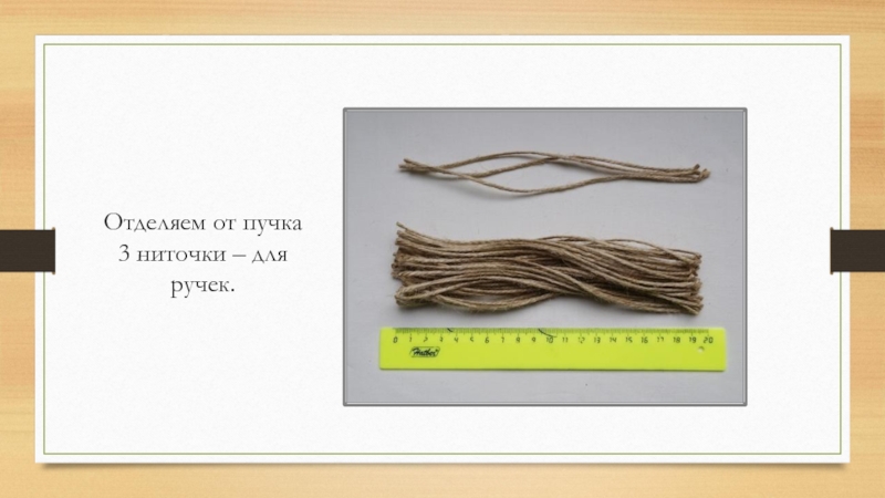 Слайд 7Отделяем от пучка 3 ниточки – для ручек.