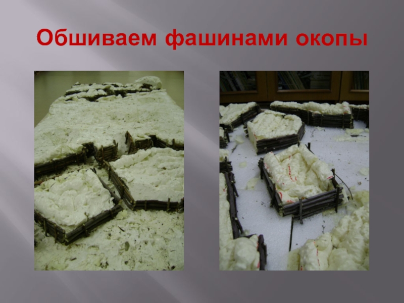 Слайд 18Обшиваем окопы советских войск
