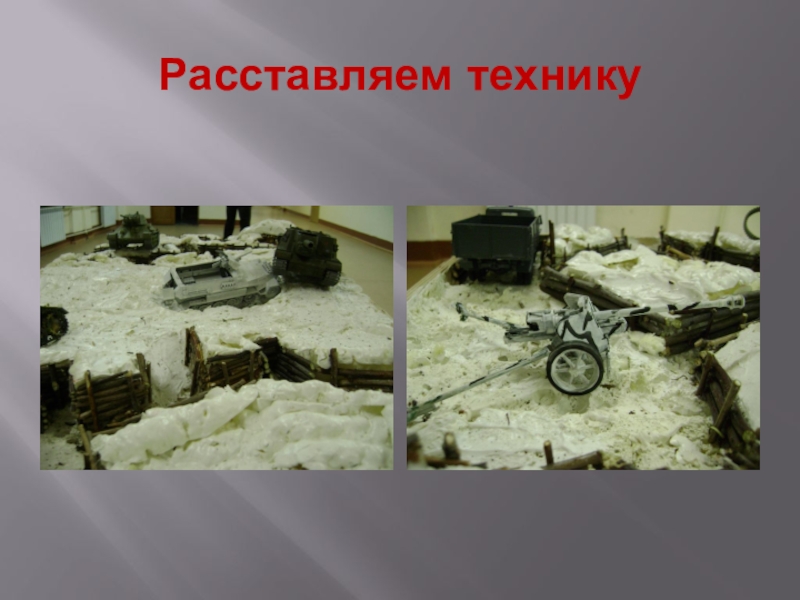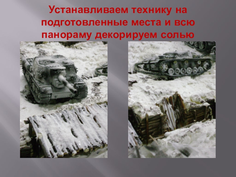 Слайд 23Устанавливаем технику на подготовленные места и всю панораму декорируем солью