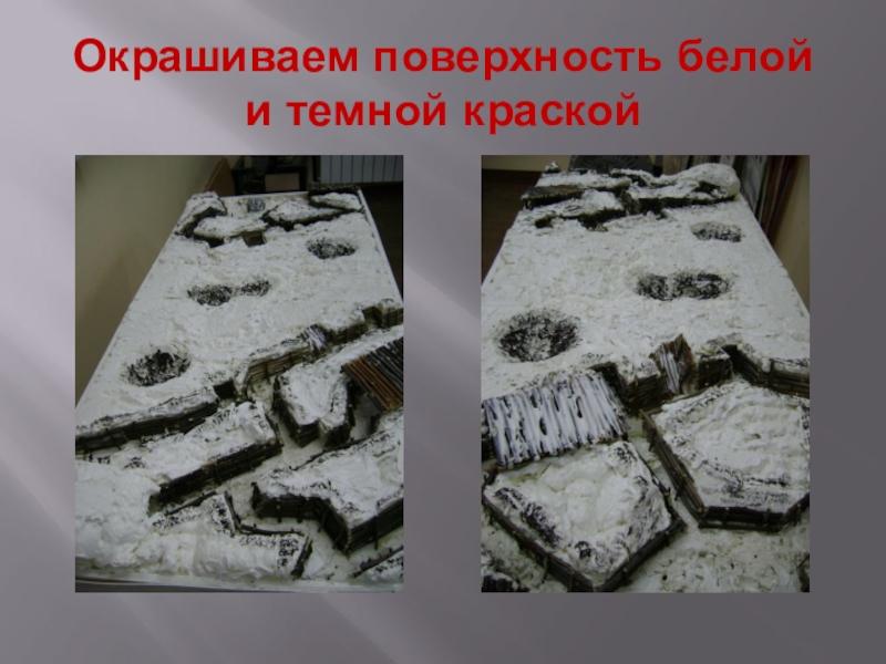 Слайд 19Окрашиваем поверхность белой и темной краской