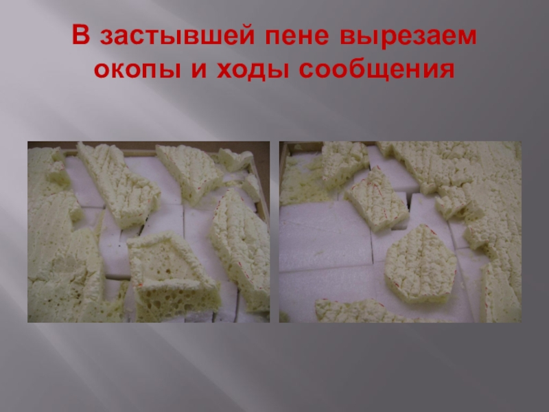 Слайд 16В застывшей пене вырезаем окопы и ходы сообщения