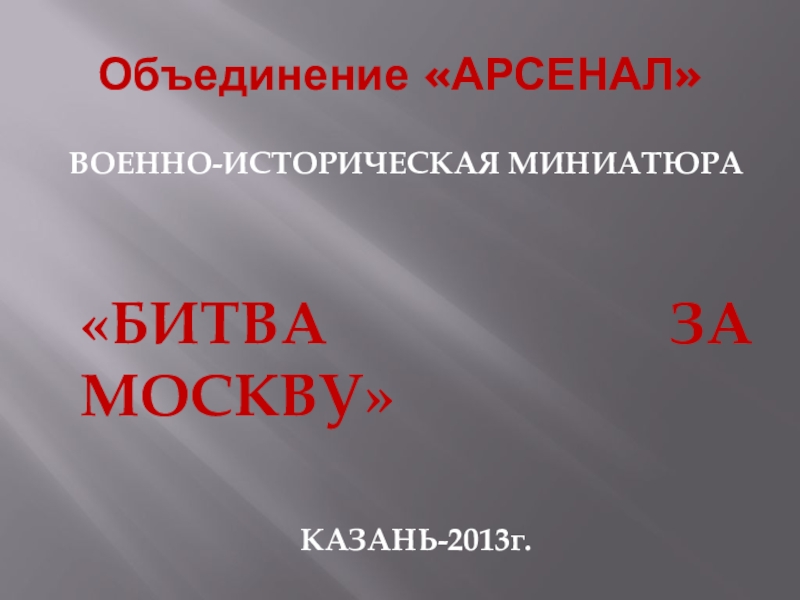 Объединение «АРСЕНАЛ»ВОЕННО-ИСТОРИЧЕСКАЯ МИНИАТЮРА«БИТВА ЗА МОСКВУ»КАЗАНЬ-2013г.