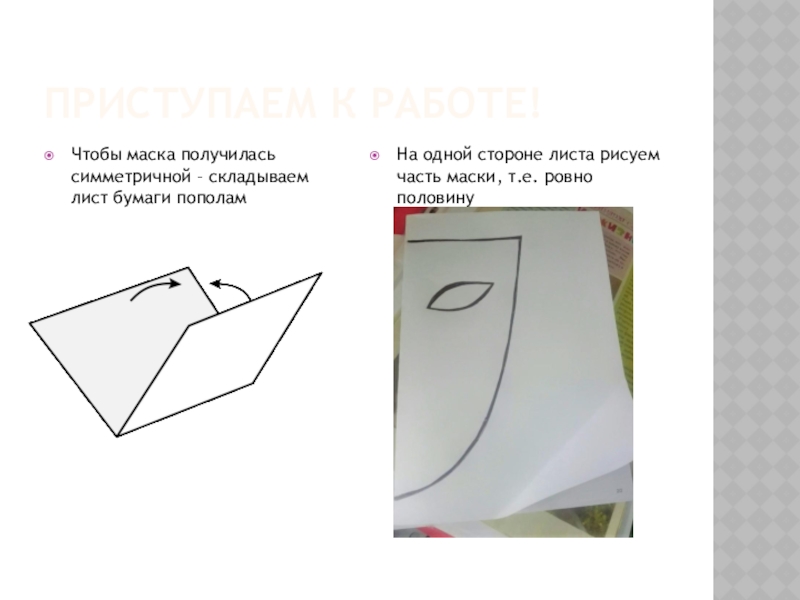 одной стороне листа рисуем часть маски, т.е. ровно половину