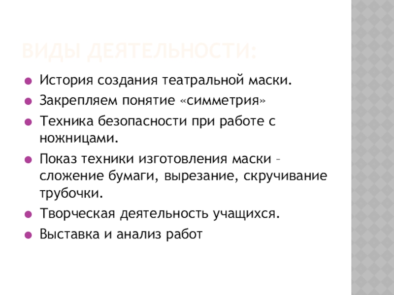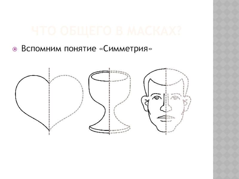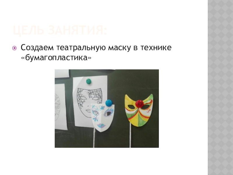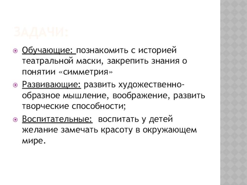 Обучающие: познакомить с историей театральной маски, закрепить знания о понятии «симметрия»