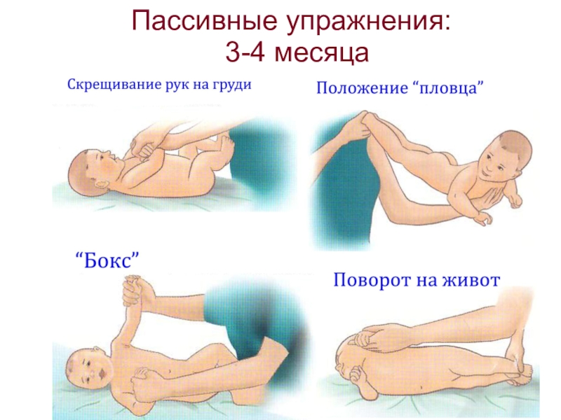 Слайд 3Пассивные упражнения: 3-4 месяца