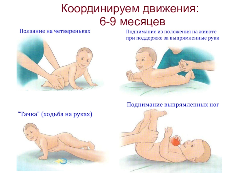 Слайд 4Готовимся ползать: 4-6 месяцев