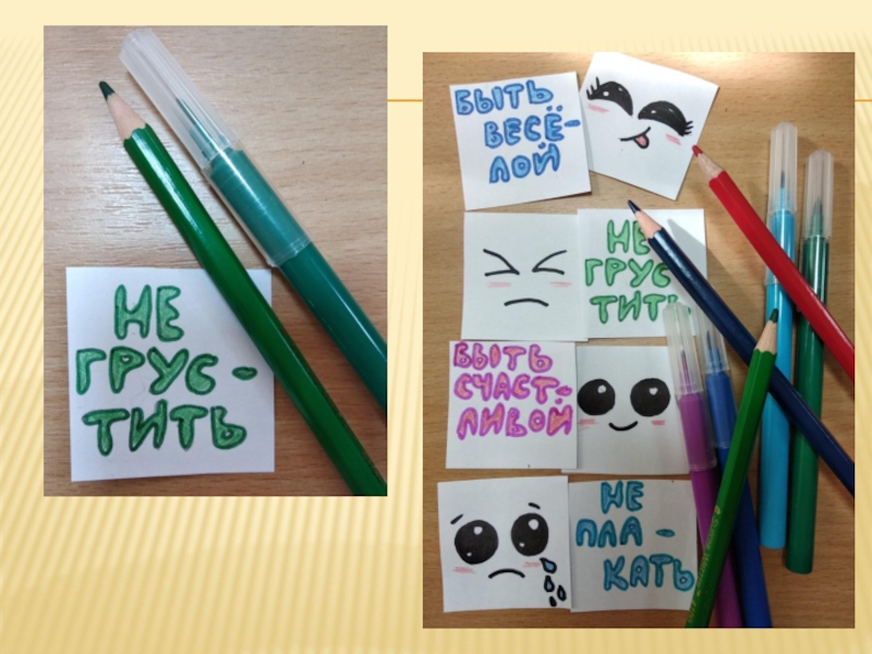 12. Приклеить картинки как показано на рисунке – смайлик по диагонали от вырезанной части квадрата.