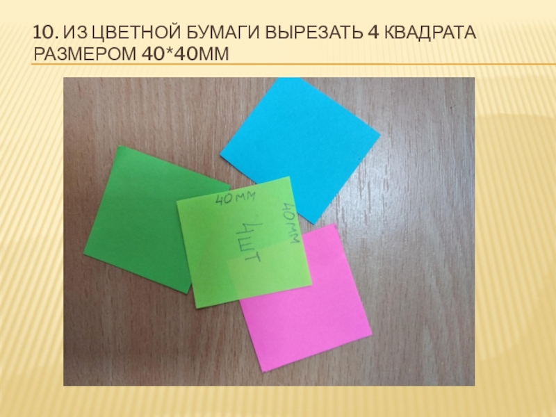 Слайд 1510. Из цветной бумаги вырезать 4 квадрата размером 40*40мм