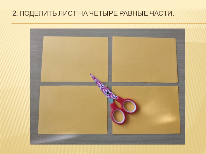Слайд 42. Поделить лист на четыре равные части.