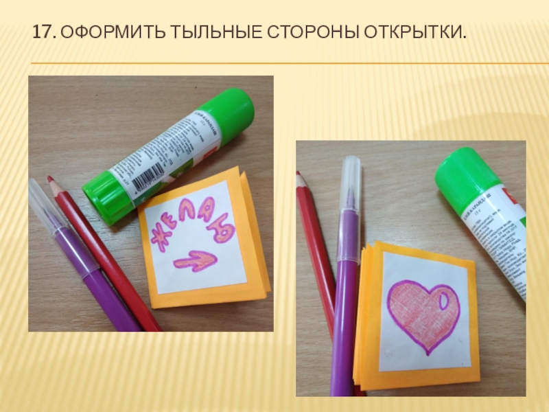 Слайд 2517. Оформить тыльные стороны открытки.