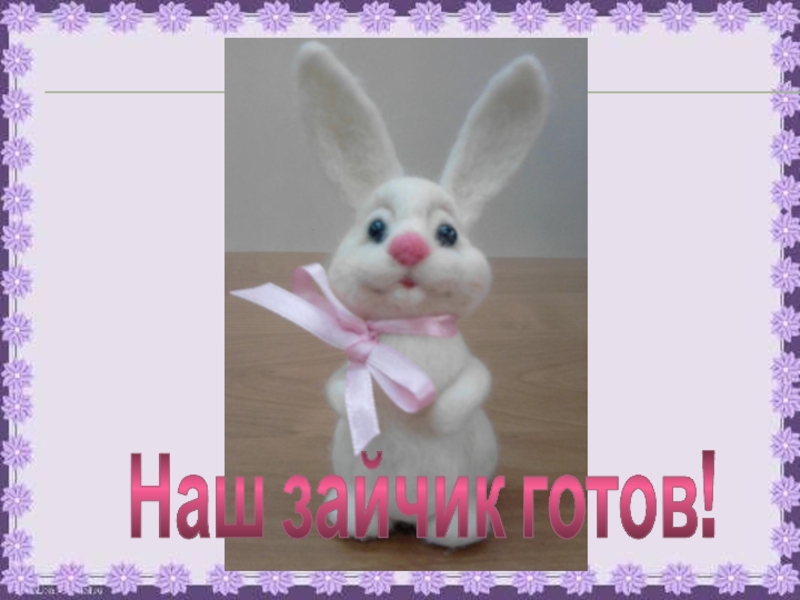Слайд 22Приваливаем ушко к затылку зайки. Добавляем шерстки на место стыка