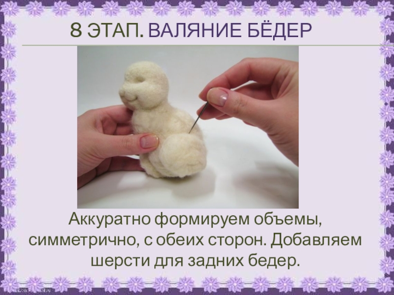 8 этап. Валяние бёдерАккуратно формируем объемы, симметрично, с обеих сторон. Добавляем