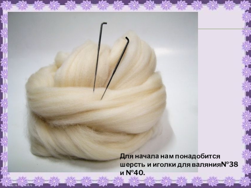 Слайд 5Для начала нам понадобится шерсть и иголки для валяния№38 и №40.