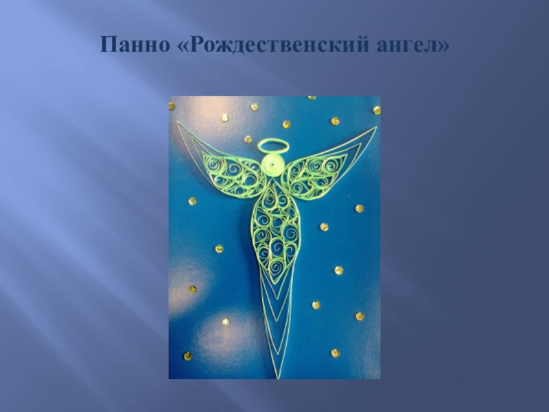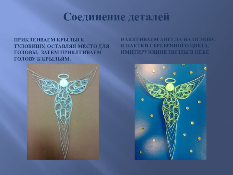 Наклеиваем ангела на основу, и паетки серебряного цвета, имитирующие звезды в небе