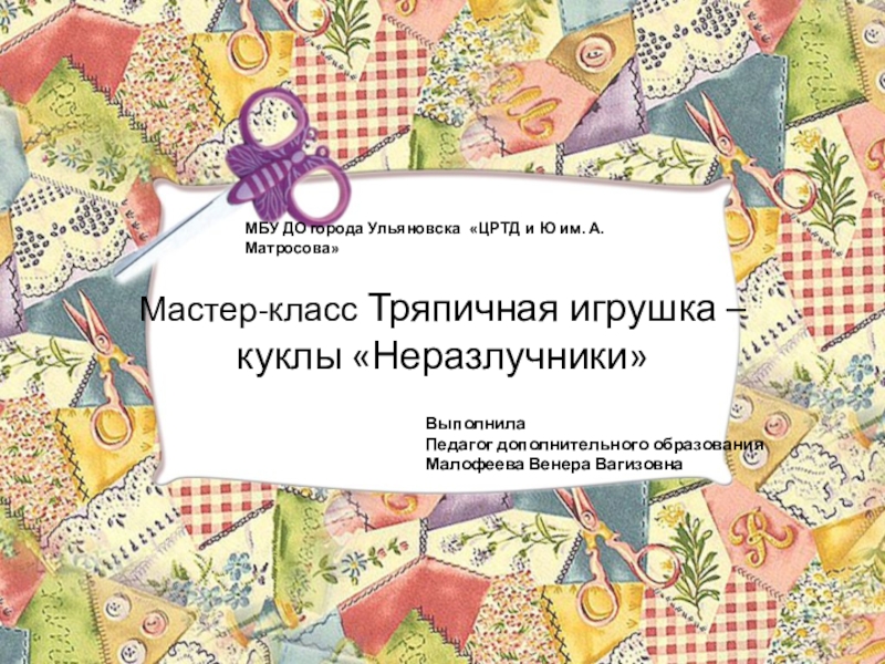 Слайд 2Цель: Изготовление тряпичной лоскутной игрушки – куклы «Неразлучники».