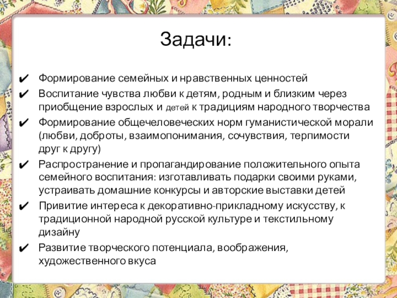 Привитие интереса к декоративно-прикладному искусству, к традиционной народной русской культуре и текстильному дизайну