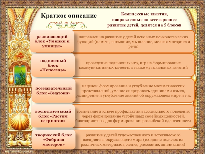 Комплексные занятия, направленные на всестороннее развитие детей, делятся на 5 блоков