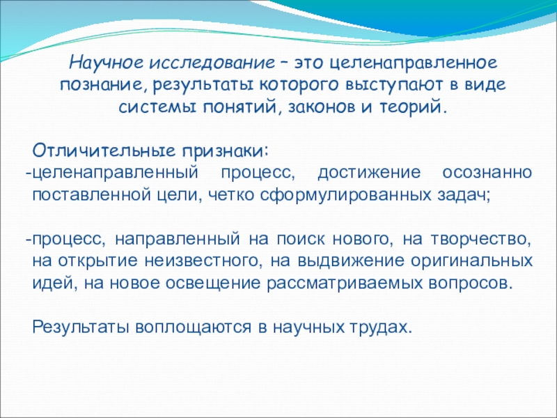 Слайд 2Научное исследование – это целенаправленное познание, результаты которого выступают в виде