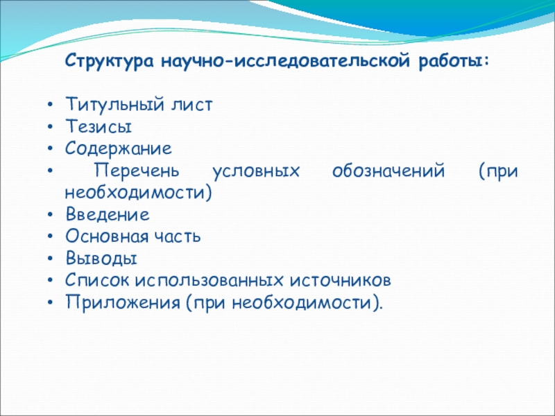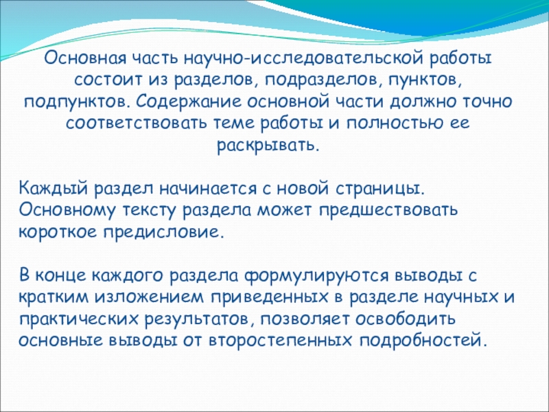 Основная часть научно-исследовательской работы состоит из разделов, подразделов, пунктов, подпунктов. Содержание