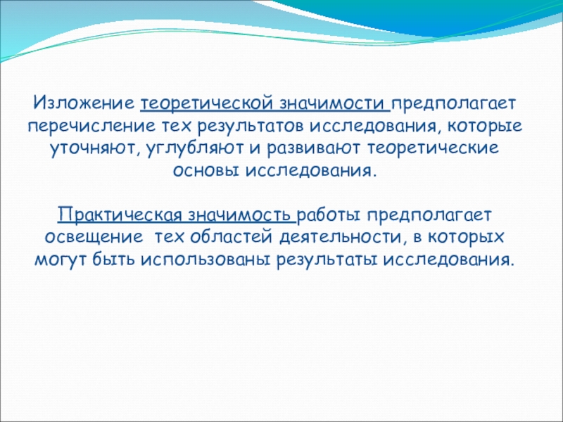 Изложение теоретической значимости предполагает перечисление тех результатов исследования, которые уточняют, углубляют