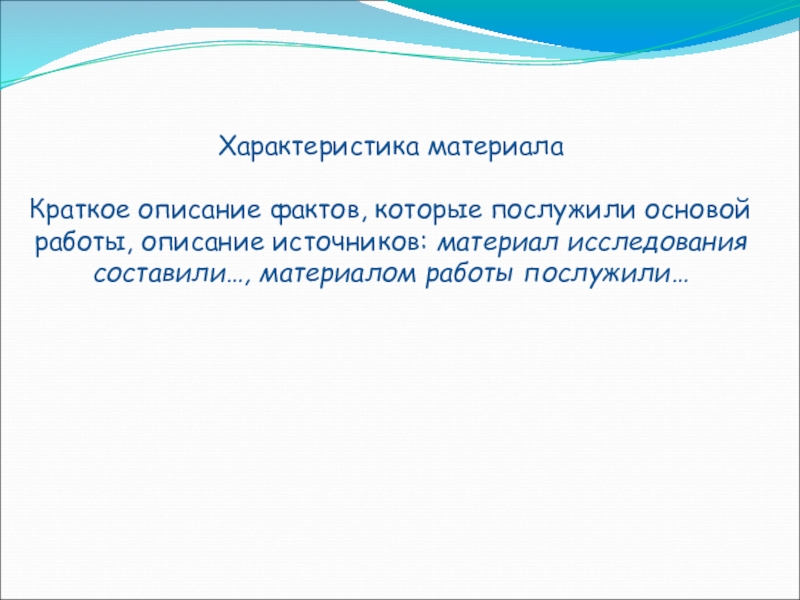 Краткое описание фактов, которые послужили основой работы, описание источников: материал