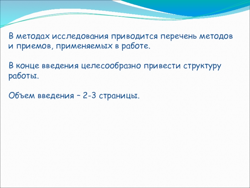 В методах исследования приводится перечень методов и приемов, применяемых в работе.