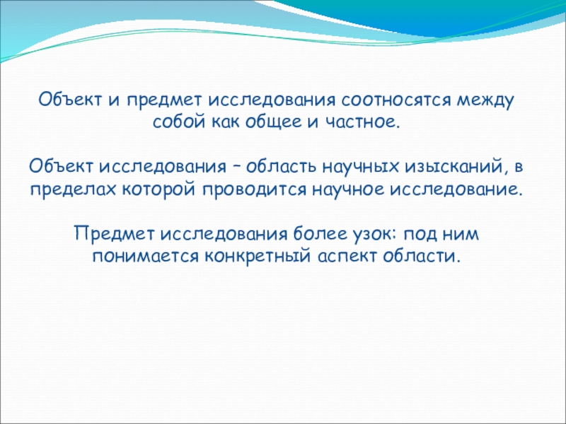 Объект и предмет исследования соотносятся между собой как общее и частное.