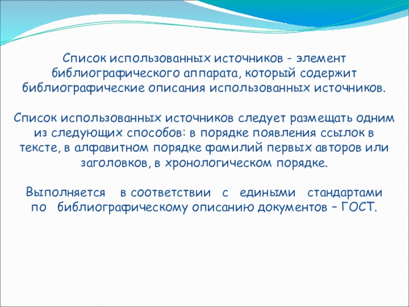 Список использованных источников - элемент библиографического аппарата, который содержит библиографические описания