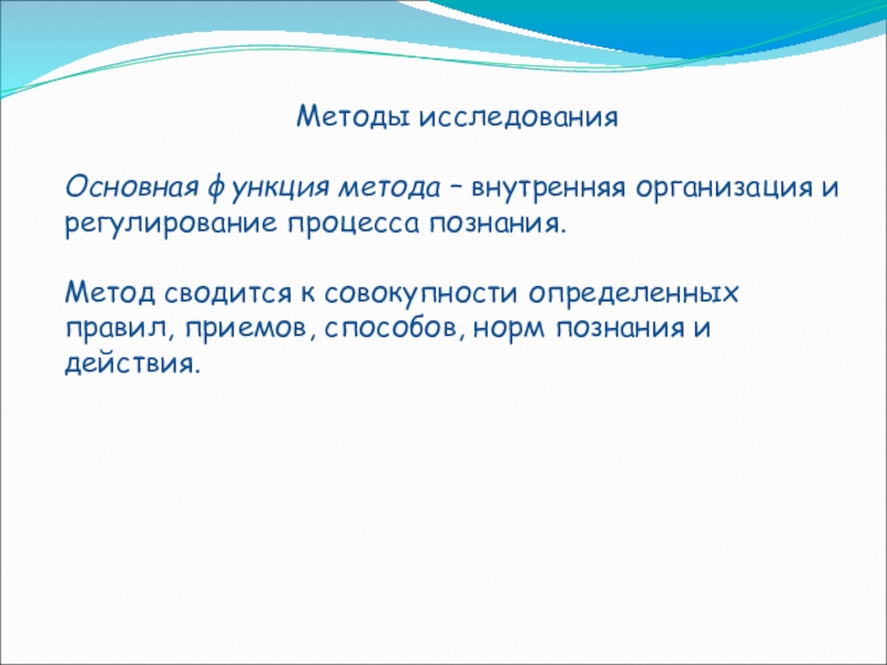 Метод сводится к совокупности определенных правил, приемов, способов, норм познания и действия.