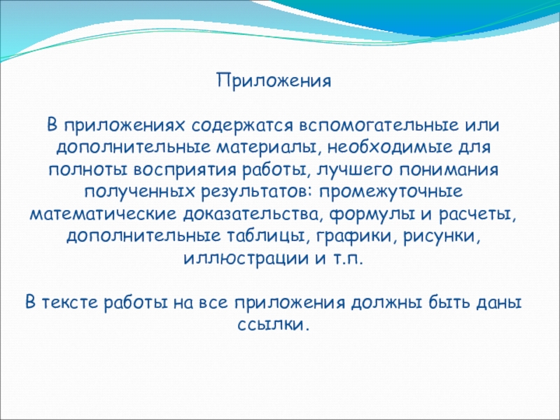 восприятия работы, лучшего понимания полученных результатов: промежуточные математические доказательства, формулы и расчеты, дополнительные таблицы, графики, рисунки, иллюстрации и т.п.