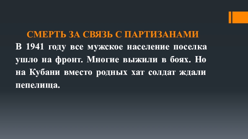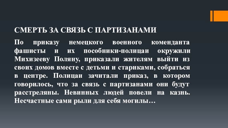 Слайд 4СМЕРТЬ ЗА СВЯЗЬ С ПАРТИЗАНАМИ