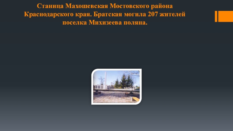 Слайд 1Михизеева поляна – Кубанская Хатынь