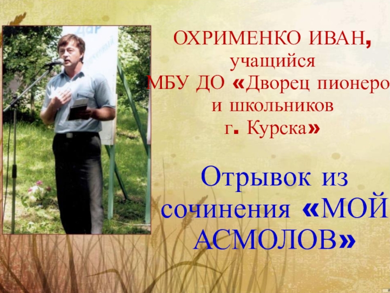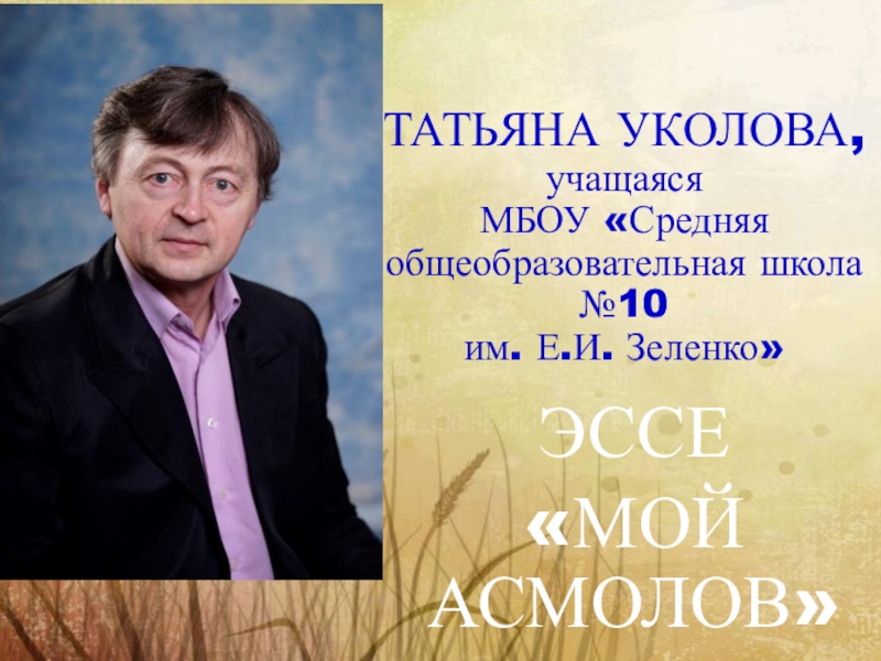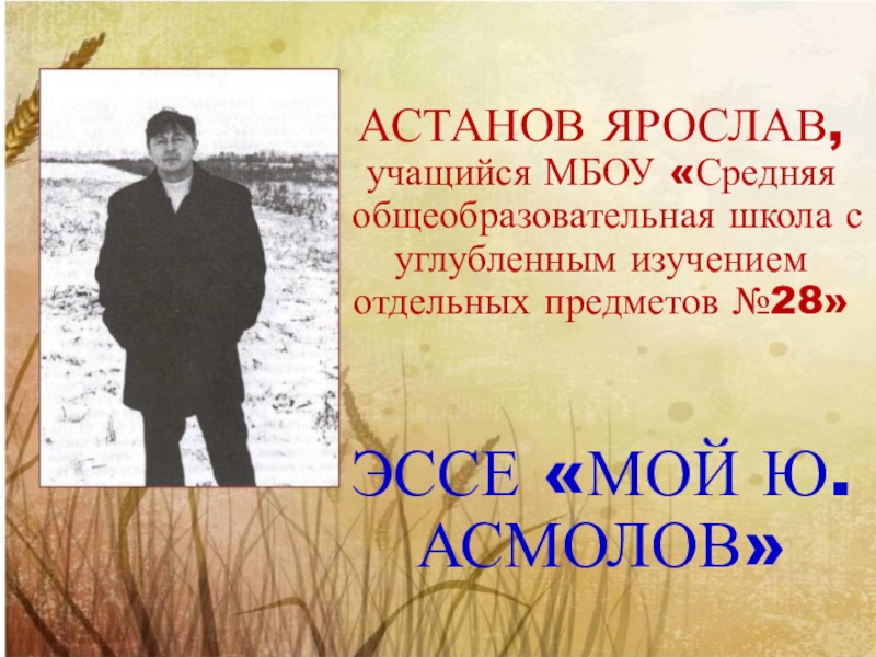 ЭССЕ «МОЙ Ю. АСМОЛОВ»