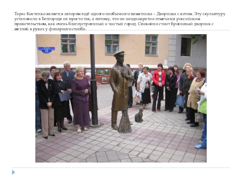 Слайд 12Тарас Костенко является автором ещё одного необычного памятника – Дворника с