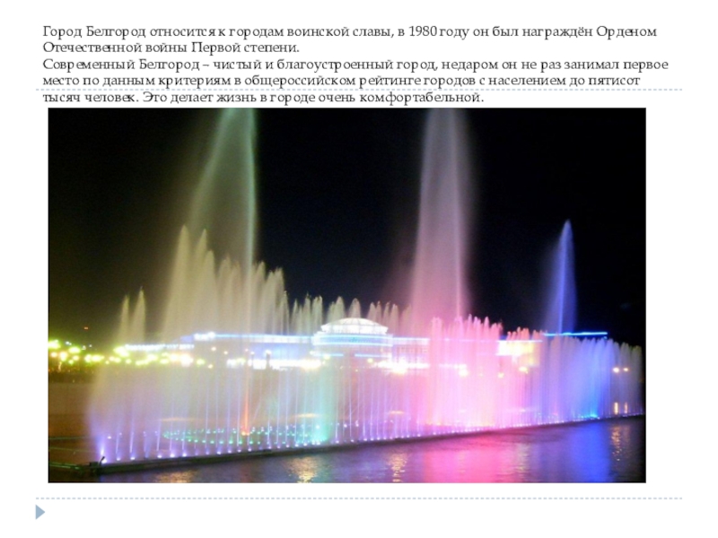 Слайд 14Город Белгород относится к городам воинской славы, в 1980 году он