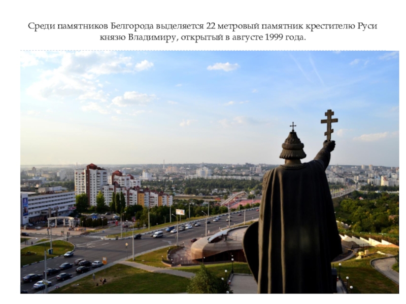 Слайд 9Среди памятников Белгорода выделяется 22 метровый памятник крестителю Руси князю Владимиру,