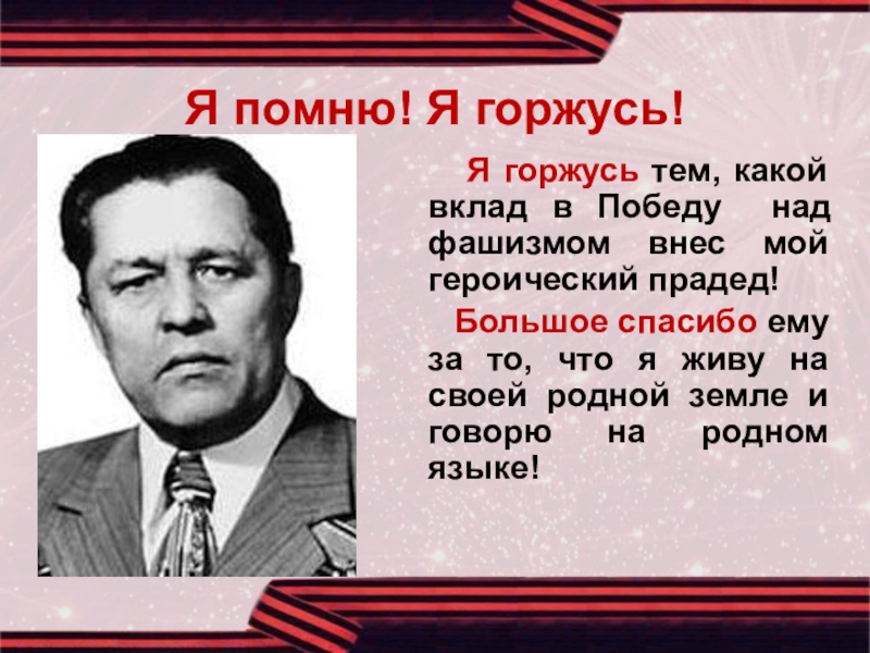 Большое спасибо ему за то, что я живу на своей родной земле и говорю на родном языке!