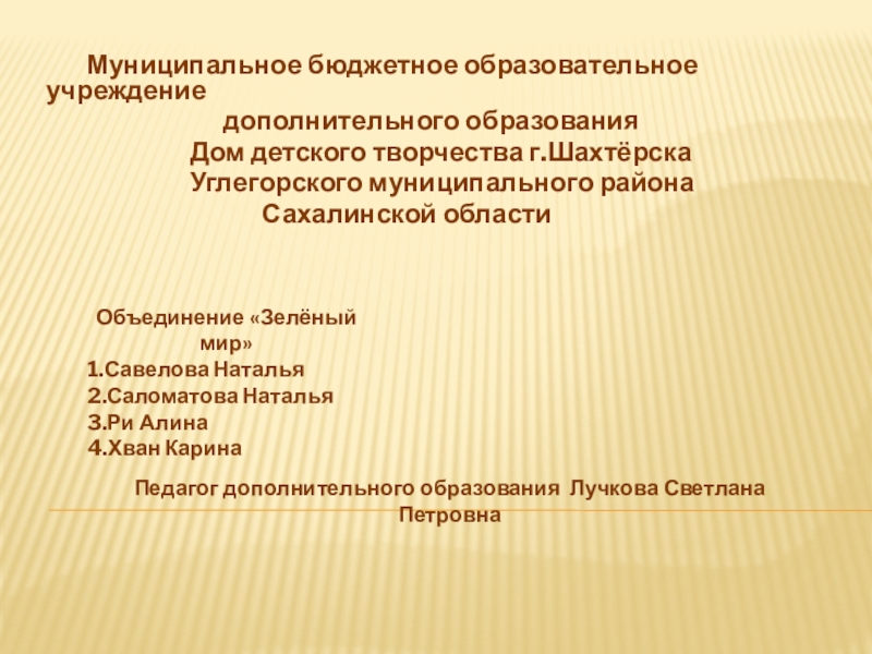 Педагог дополнительного образования Лучкова Светлана Петровна