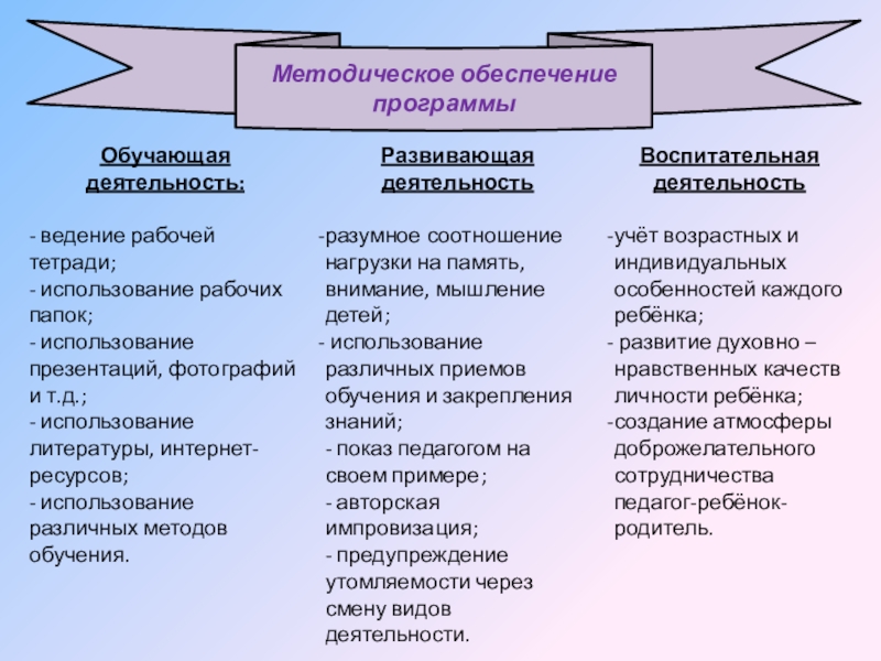 разумное соотношение нагрузки на память, внимание, мышление детей;