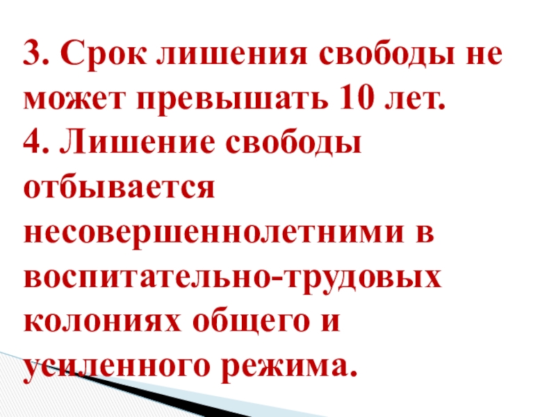 Слайд 133. Срок лишения свободы не может превышать 10 лет.