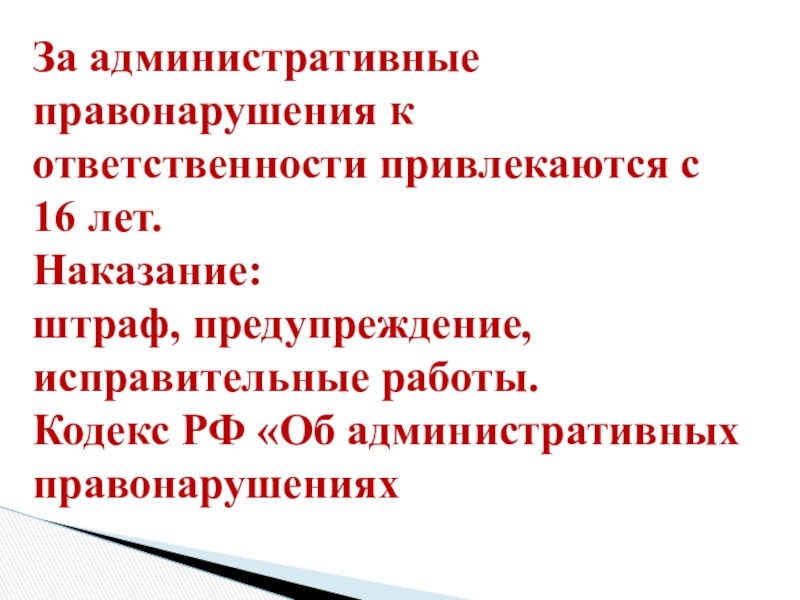 Слайд 16За административные правонарушения к ответственности привлекаются с 16 лет.