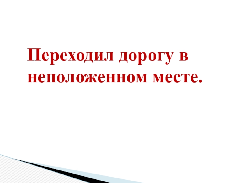 Слайд 44Переходил дорогу в неположенном месте.