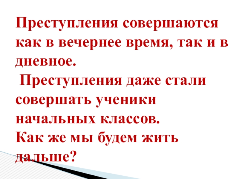 Слайд 6Преступления совершаются как в вечернее время, так и в дневное.