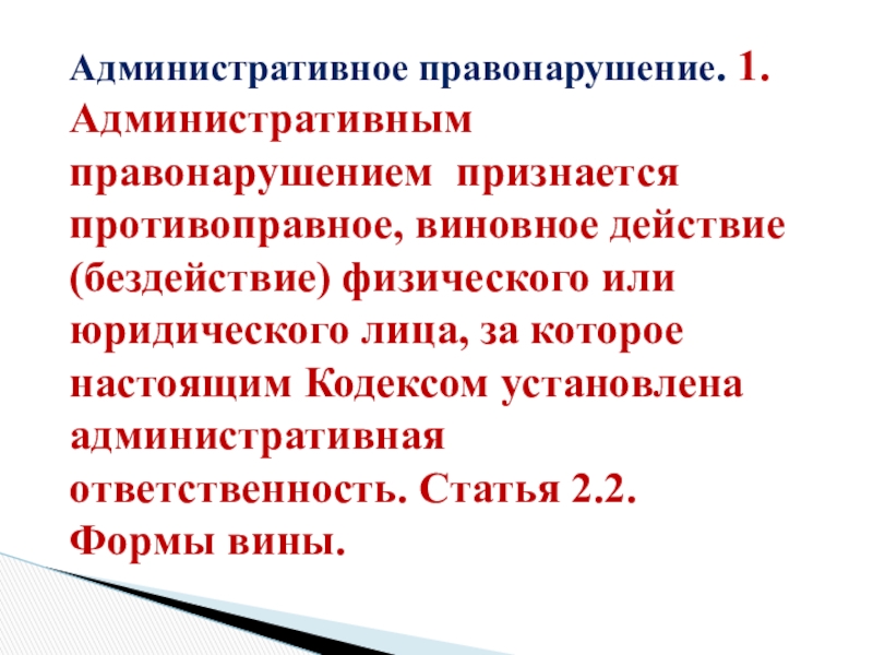 Слайд 17Административное правонарушение. 1.Административным правонарушением признается противоправное, виновное действие (бездействие) физического или