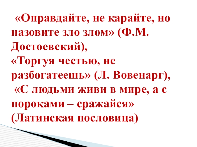 Слайд 3 «Оправдайте, не карайте, но назовите зло злом» (Ф.М. Достоевский),